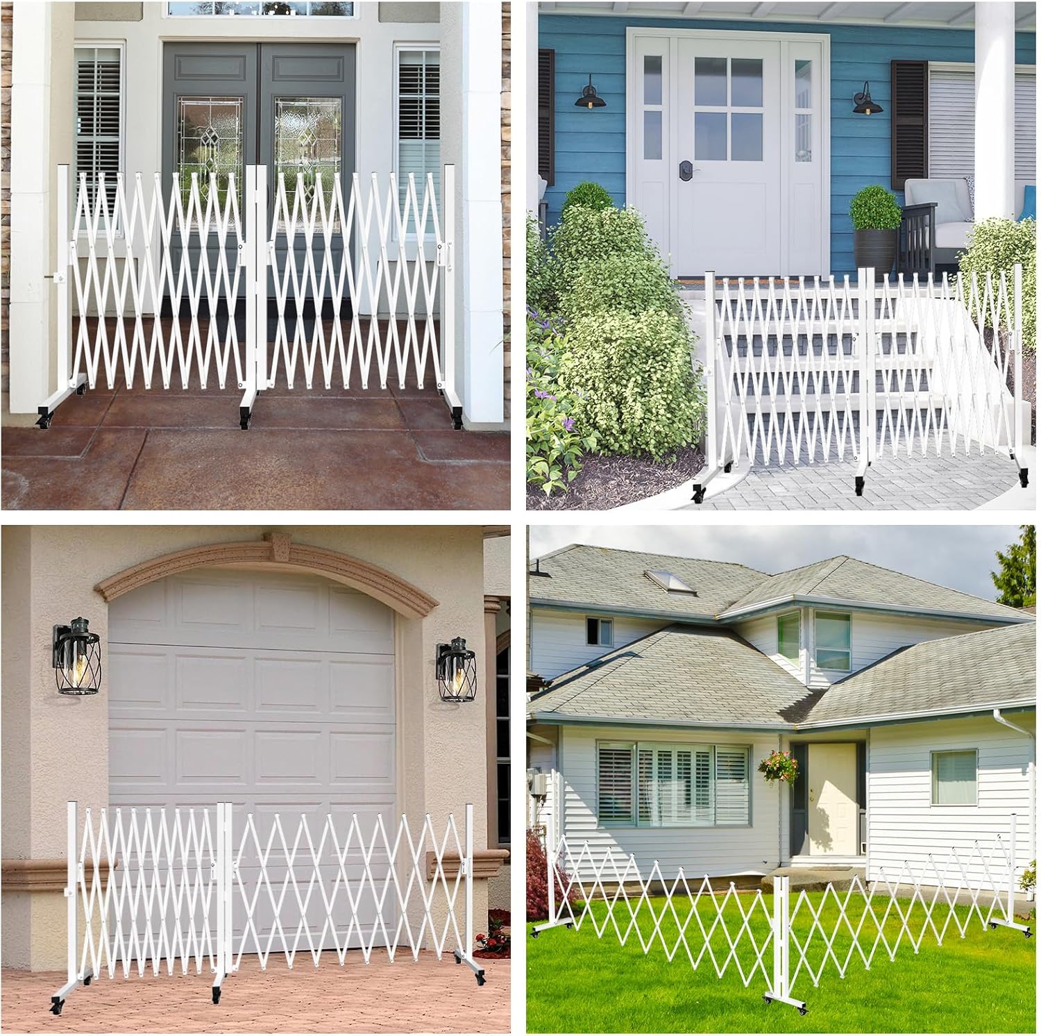 Fairybaby Extra Wide Retractable Outdoor Dog Gate, Expandable Portable Fence- extends up to 209 inches, making it perfect for a wide range of uses. Whether you need to block off garages, driveways, porches, patios, gardens, warehouses, retail spaces, or other areas, this barrier adjusts to fit your needs. Rust-resistant and strong enough for both kids and pets.